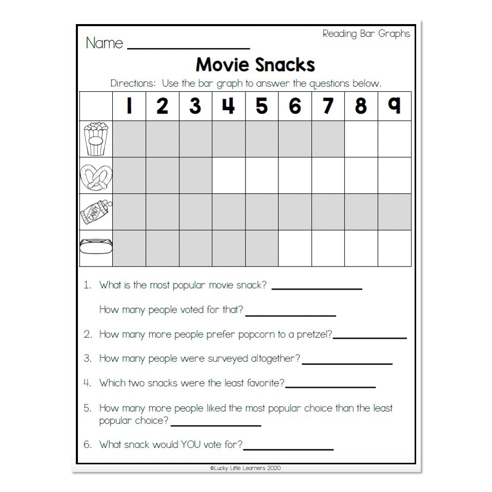 2nd Grade Math Worksheets Data Graphing Reading Bar Graphs Movie Snacks Lucky Little Learners