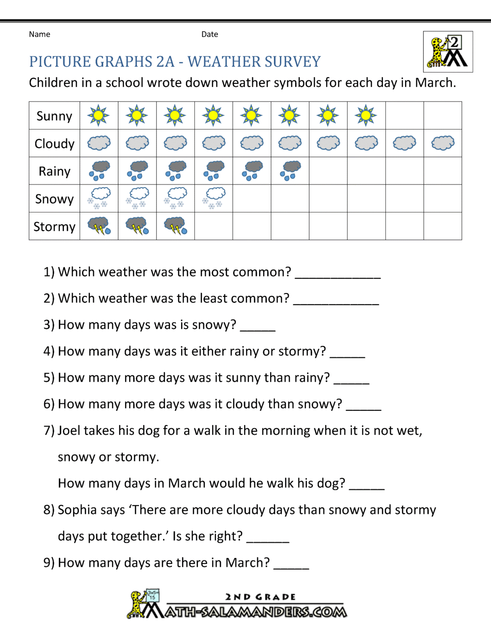 2nd Grade Math Worksheets Graphs