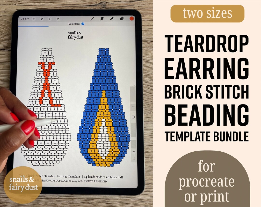 Teardrop Shaped Brick Stitch Earring Digital Templates For Procreate Or Print 2 Sizes Instant Download Etsy
