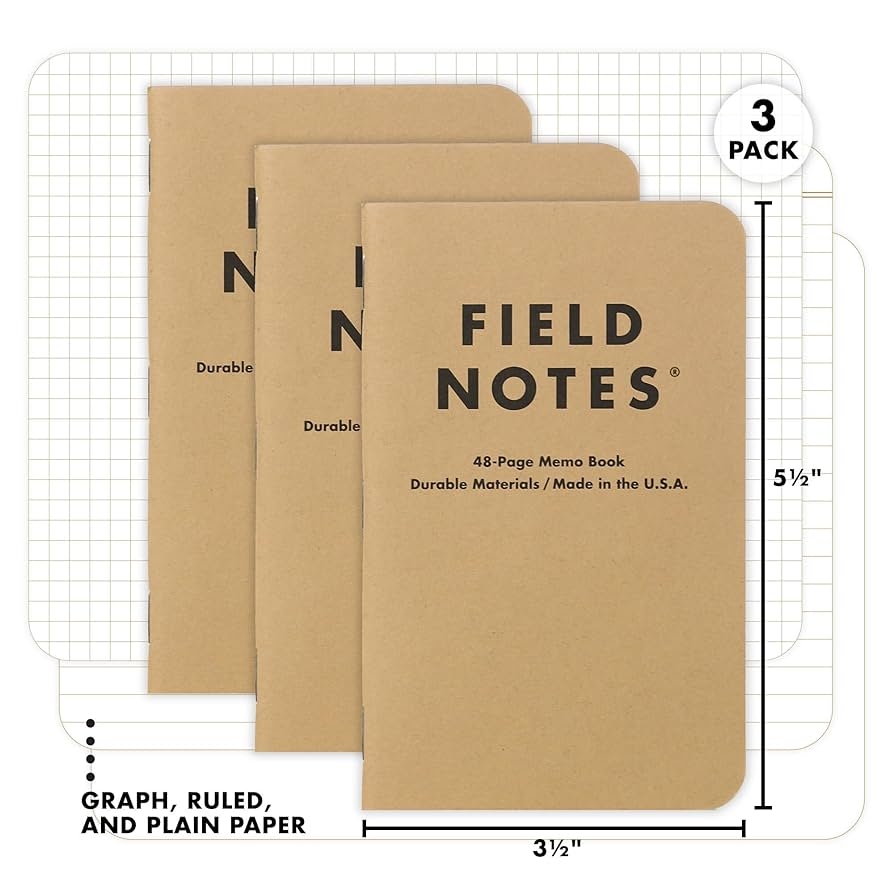 Amazon Field Notes Original Kraft 3 Pack Mixed Paper 1 Graph Grid 1 Ruled Lined 1 Plain Blank Memo Books 48 Page Pocket Notebooks 3 5 X 5 5 Memo Paper Pads Office Products
