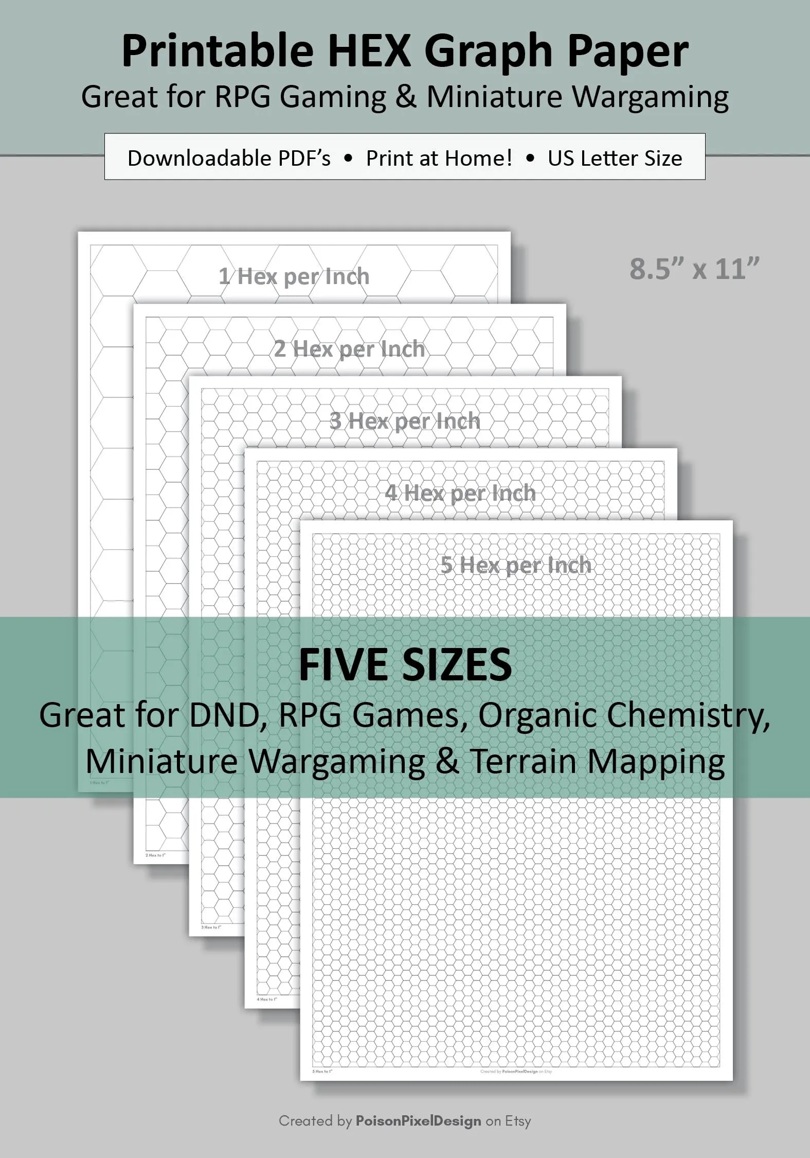 Printable Hexagonal Graph Paper Hex Grid Paper DND RPG Gaming Miniature Wargaming Terrain Mapping Game Design Quilting Chemistry Etsy