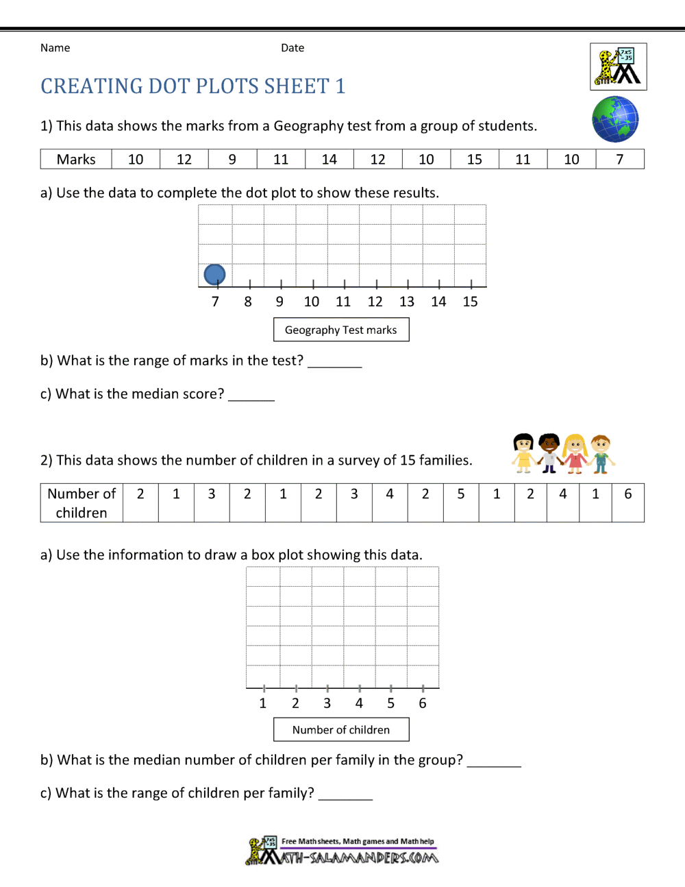Dot Plot Worksheets
