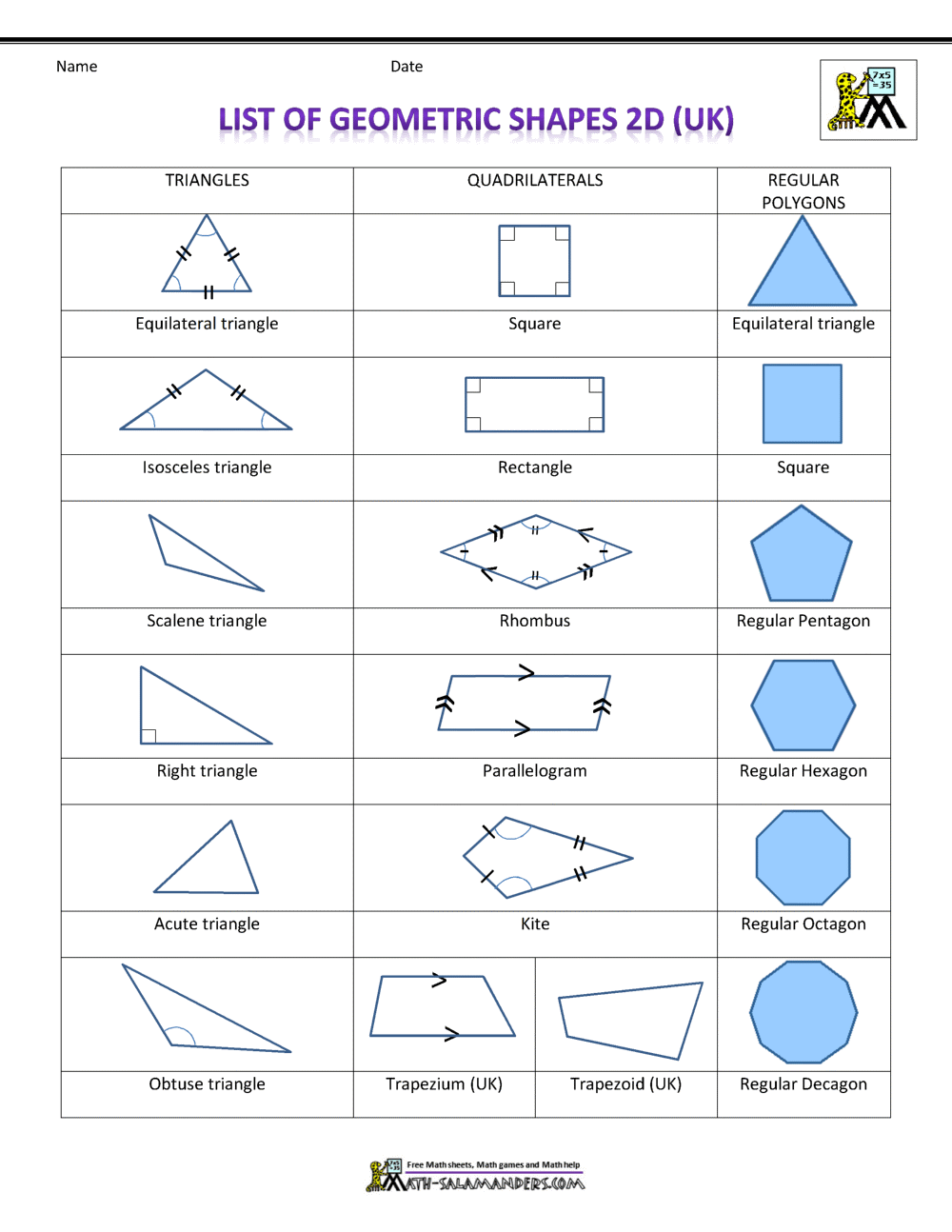 3D Shapes Complete List With Free Printable Chart Mashup Math