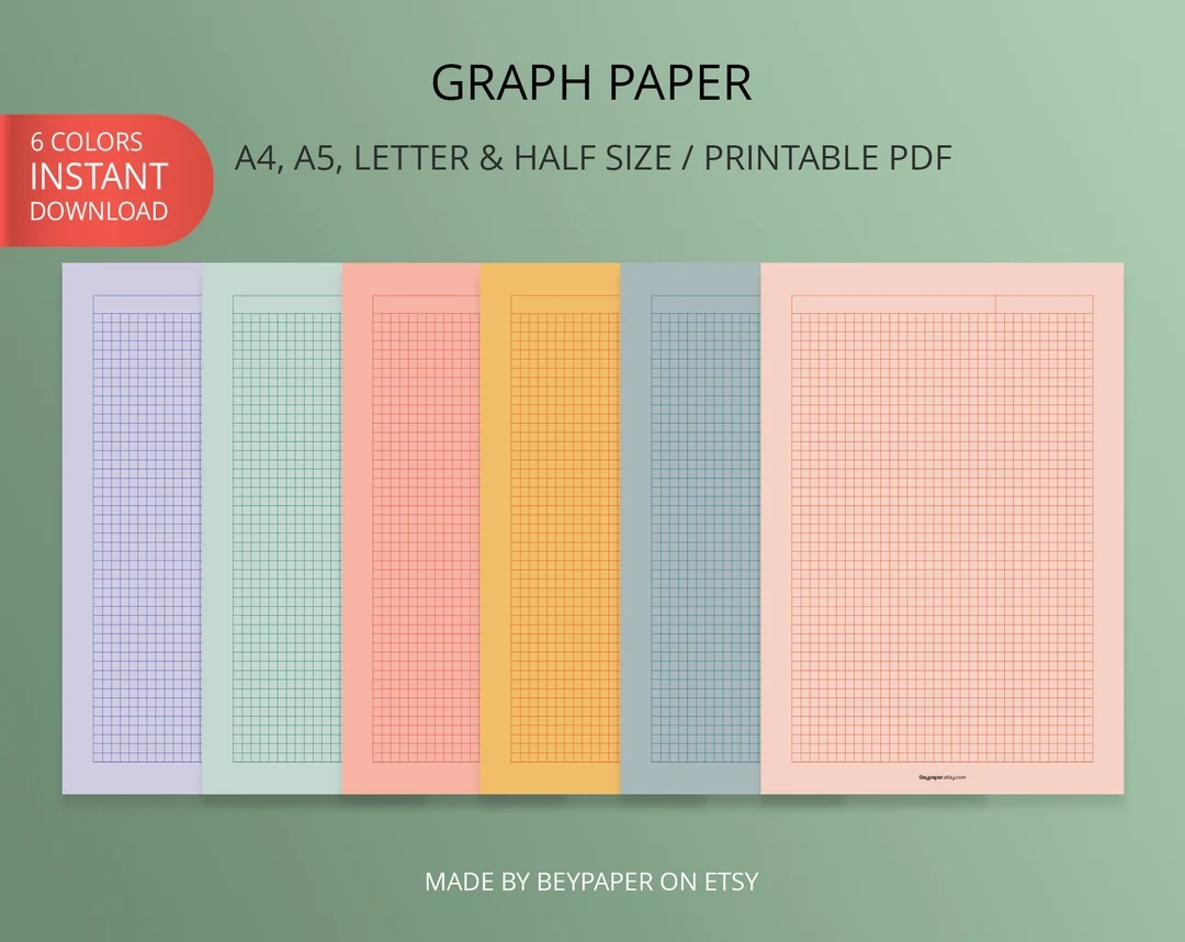 Printable Graph Paper 6 Different Colors Of Graph Papers Journal Pages Instant Download A4 a5 letter half Letter Size Etsy