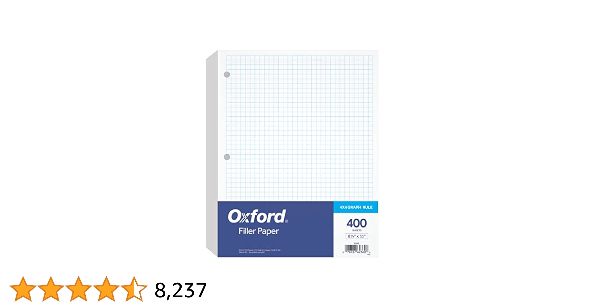 Amazon Oxford Filler Paper 8 1 2 X 11 4 X 4 Graph Rule 3 Hole Punched Loose Leaf Paper For 3 Ring Binders 400 Sheets Per Pack 62360 White Office Products