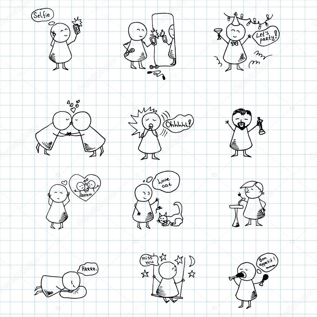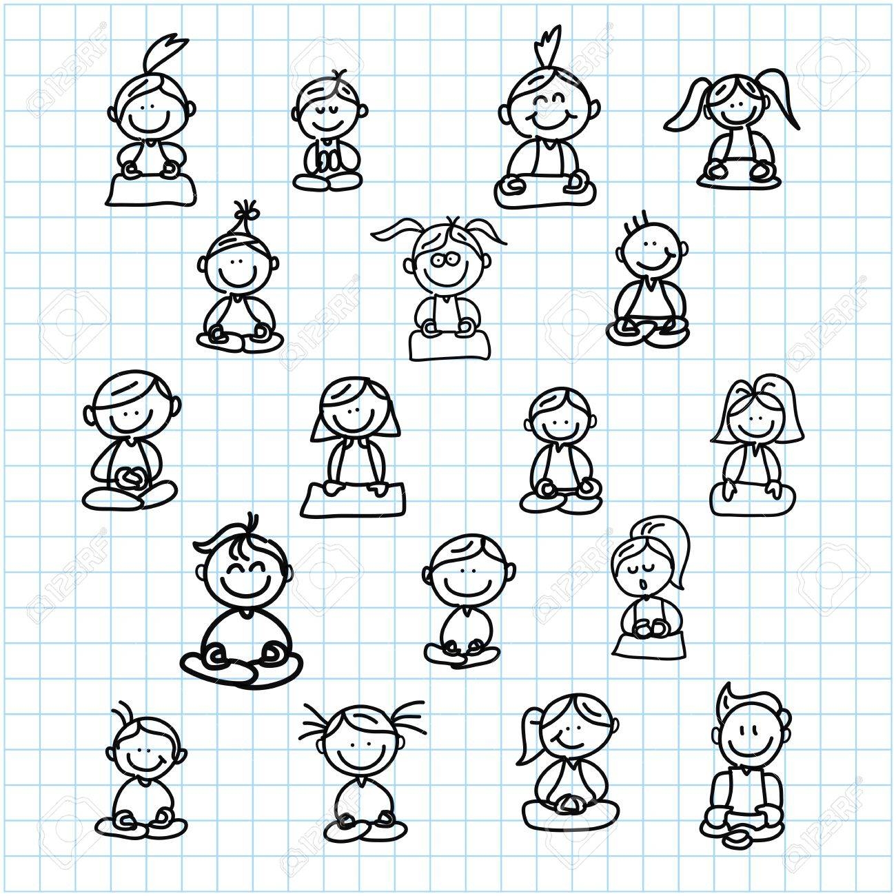 Hand Drawing Cartoon Happy People Meditation On Graph Paper Illustration Royalty Free SVG Cliparts Vectors And Stock Illustration Image 19084969