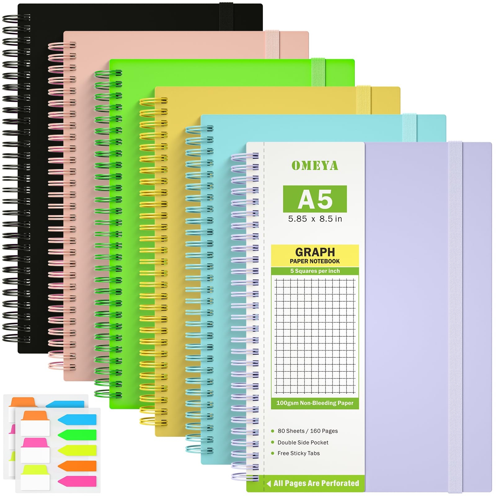 Amazon Five Star Spiral Notebook Graph Ruled 1 Subject 8 5 X 11 Inches 100 Sheets Assorted Colors 06190 Pack Of 6 Office Products