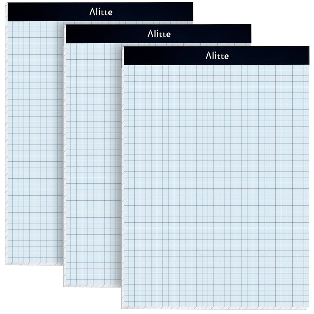 Amazon Alitte Graph Paper Pad Pack Of 3 White Letter Size 4×4 Quad Grid Paper With Blue Lines Easy Tear Perforations 11×8 5 Cardboard Backing Graph Notepads For School Office