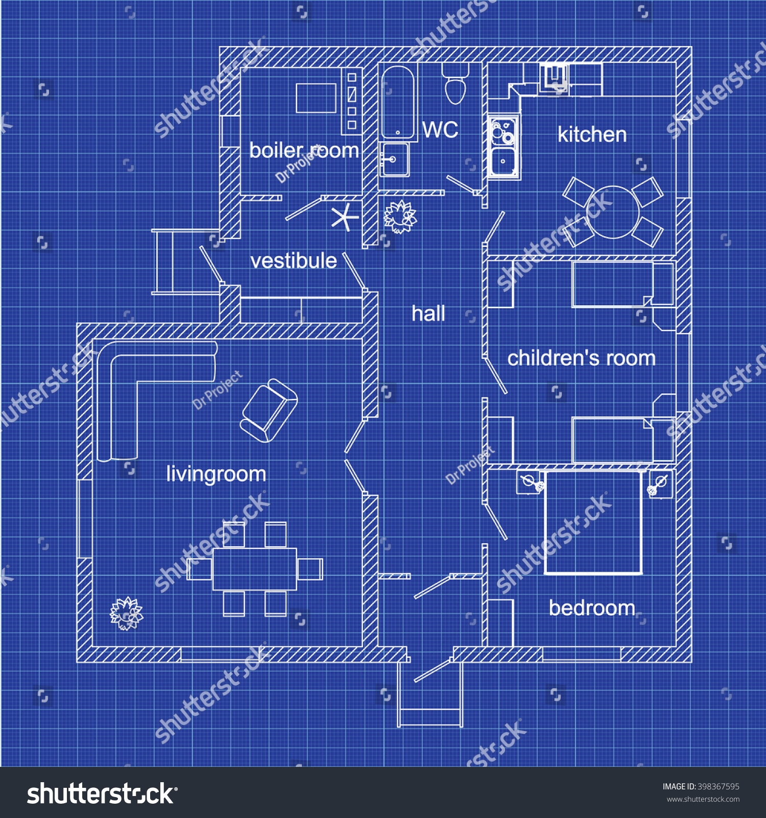 Blueprint Floor Plan Modern Apartment On Stock Vector Royalty Free 398367595 Shutterstock