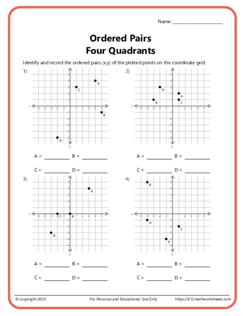 Ordered Pairs On A Coordinate Plane