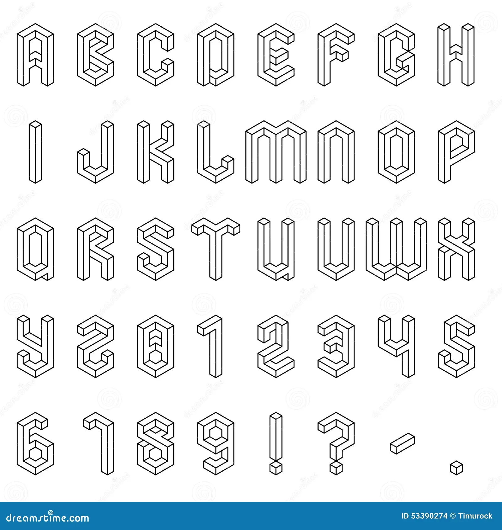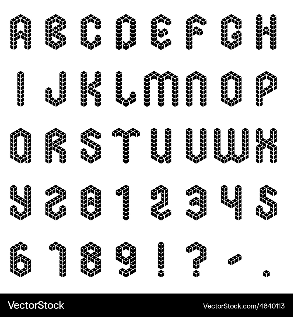 Isometric Alphabet And Numbers Stock Vector Illustration Of Cube Grid 53390274