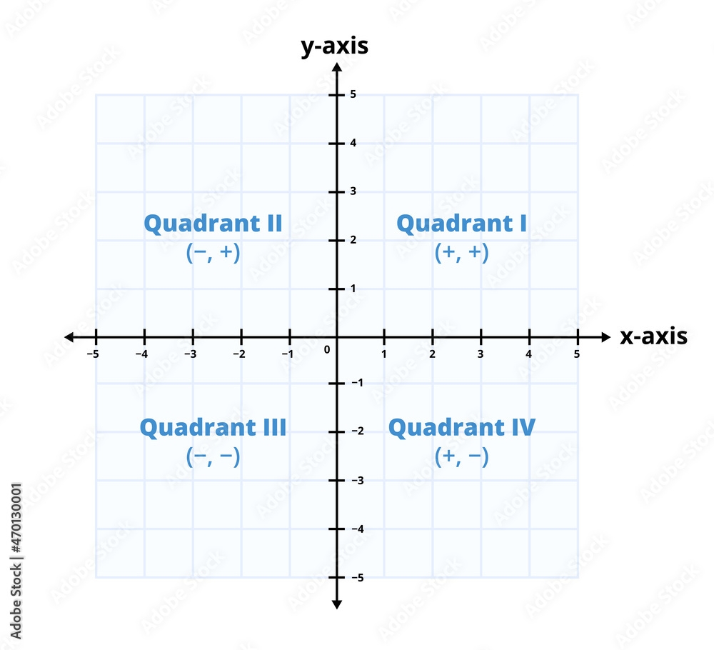 Vector Math Graph Or Chart With Blue Grid And Four Coordinate Plane Quadrants And Origin Graph