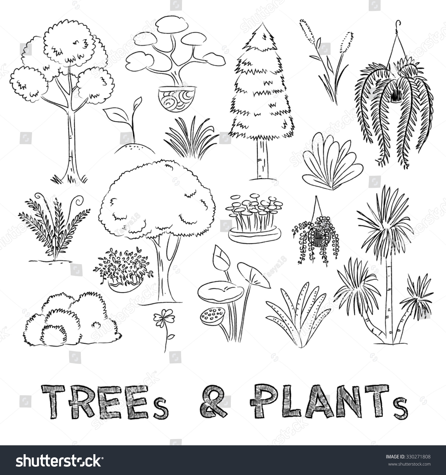 Drawing Trees Plants Collection On Grid Stock Illustration 330271808 Shutterstock